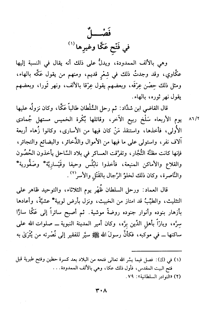 فصل فِي فتح عكا وَغَيرهَا