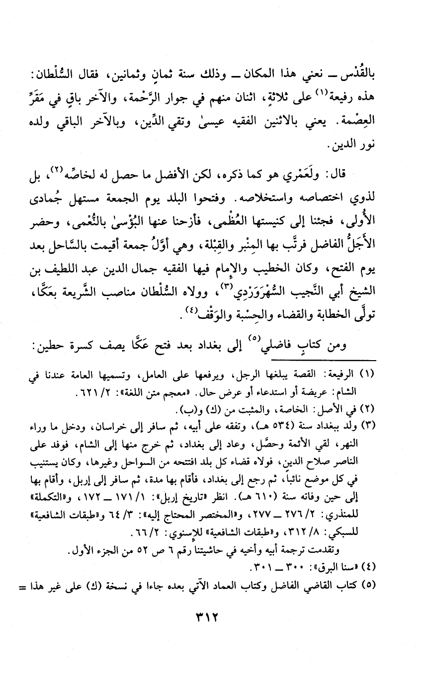 وَمن كتاب فاضلي إِلَى بَغْدَاد بعد فتح عكا يصف كسرة حطين