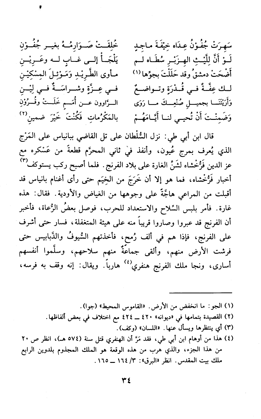 فَأمر بِلبْس السِّلَاح والاستعداد للحرب فوصل بعض الرُّعَاة فَأخْبر أَن الفرنج قد عبروا وصاروا قَرِيبا مِنْهُ على هَيْئَة المتغفلة فَسَار حَتَّى أشرف على الفرنج فَإِذا هم فِي ألف رمح فَأَخَذتهم السيوف والدبابيس حَتَّى فرشت الأَرْض مِنْهُم وَألقى جمَاعَة مِنْهُم سِلَاحهمْ وسلموا أنفسهم أُسَارَى وَنَجَا ملك الفرنج هنفري هَارِبا