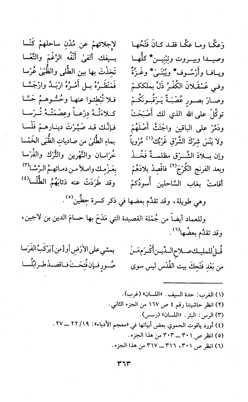 وللعماد أَيْضا من جملَة القصيدة الَّتِي مدح بهَا حسام الدّين بن لاجين وَقد تقدم بَعْضهَا