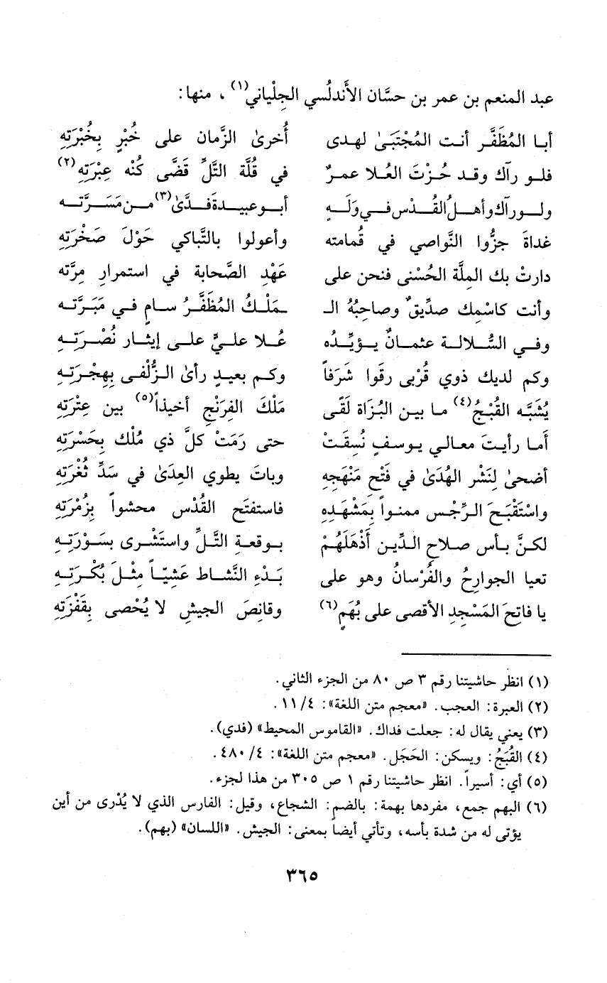 (يَا فاتح الْمَسْجِد الْأَقْصَى على بهم ... وقانص الْجَيْش لَا يُحْصى بقفزته)