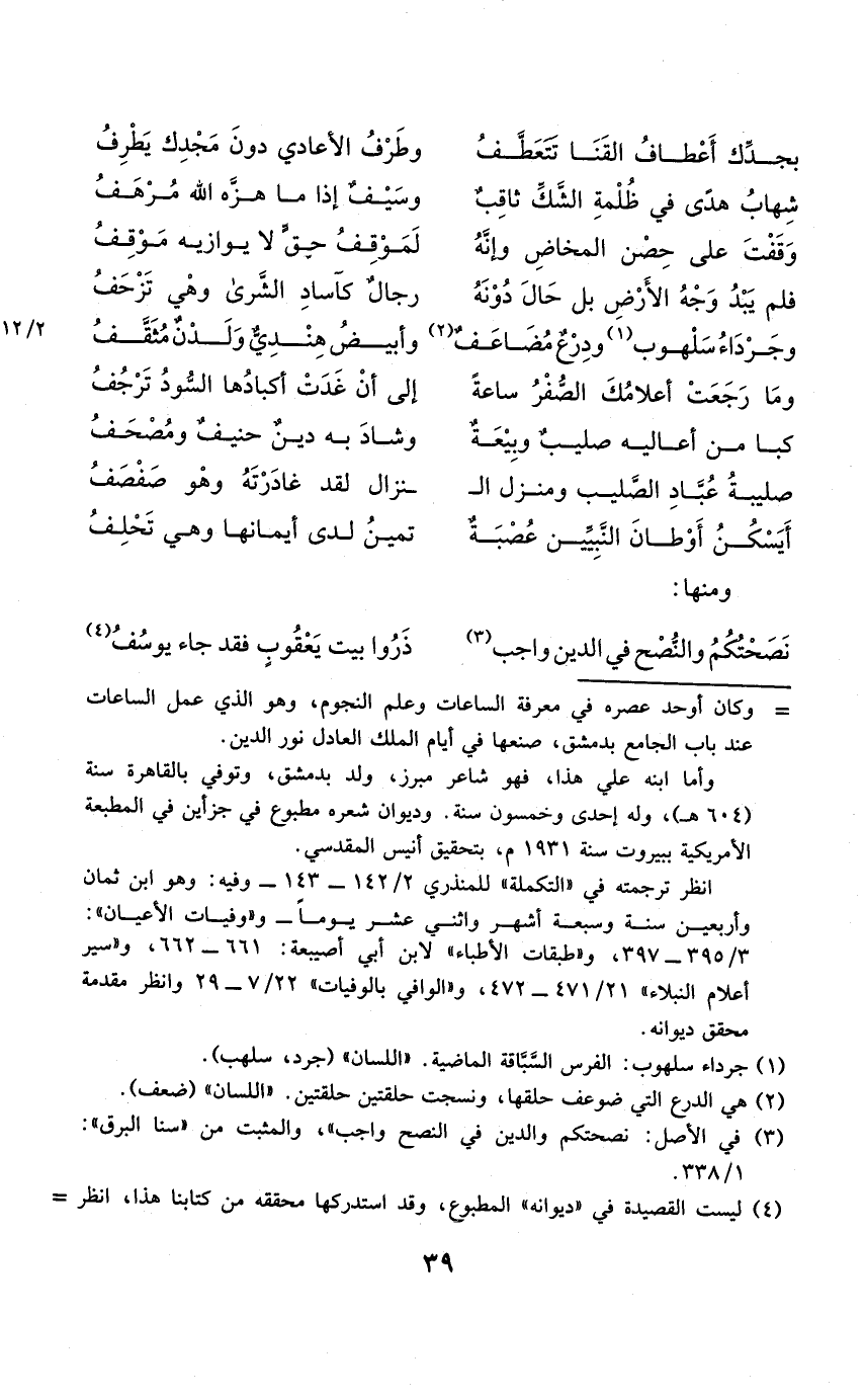 (شهَاب هدى فِي ظلمَة الشَّك ثاقب ... وَسيف إِذا مَا هزه الله مرهف)