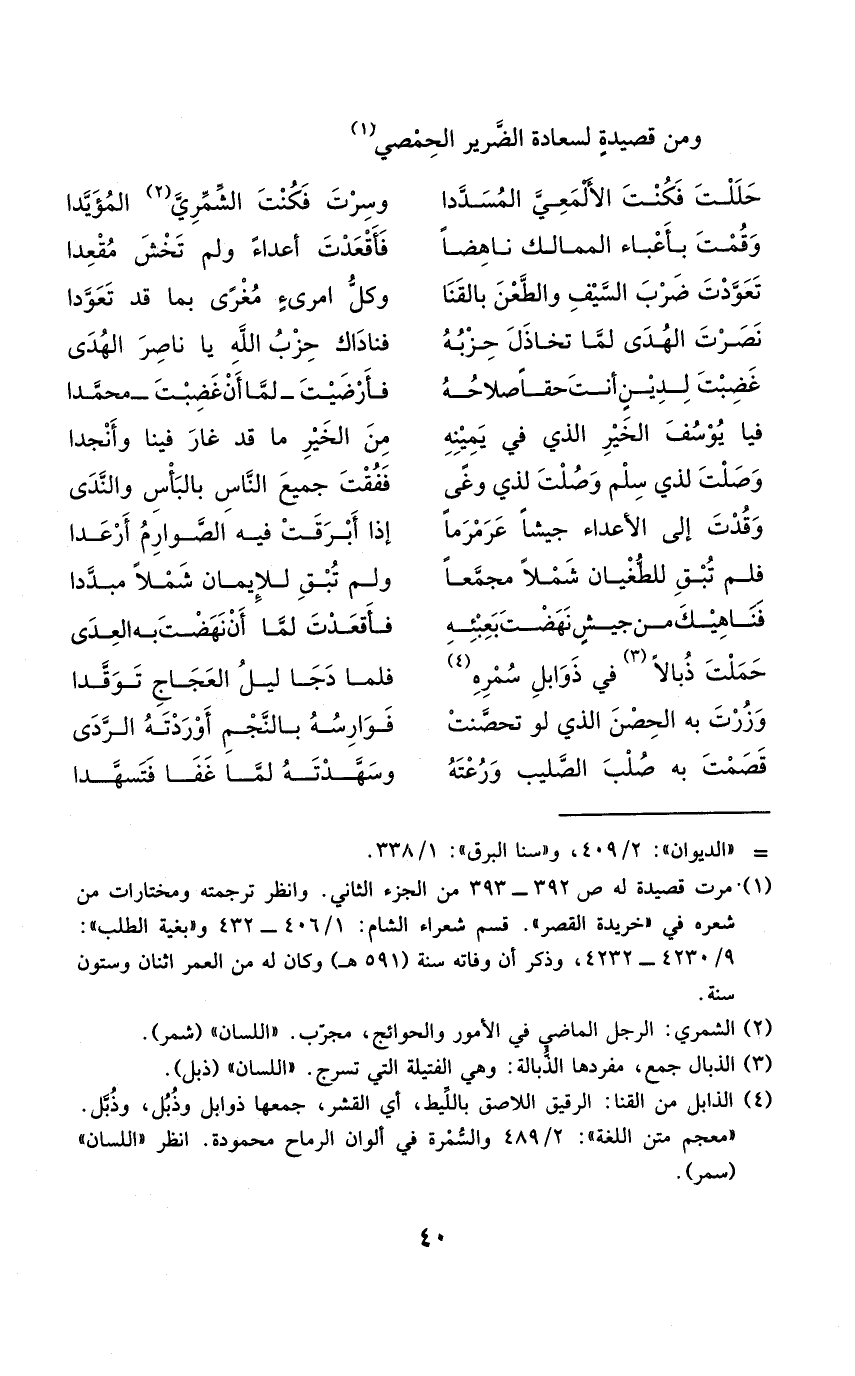 وَمن قصيدة لسعادة الضَّرِير الْحِمصِي