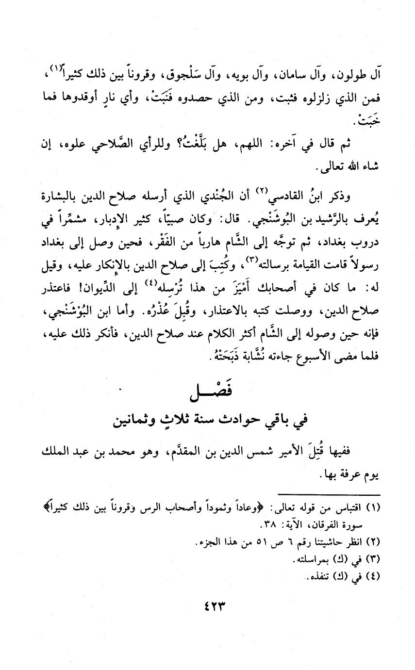 آل طولون وَآل سامان وَآل بويه وَآل سجلوق وقرونا بَين ذَلِك كثيرا فَمن الَّذِي زلزلوه فَثَبت وَمن الَّذِي حصدوه فنيت وَأي نَار أوقدوها فَمَا خبت