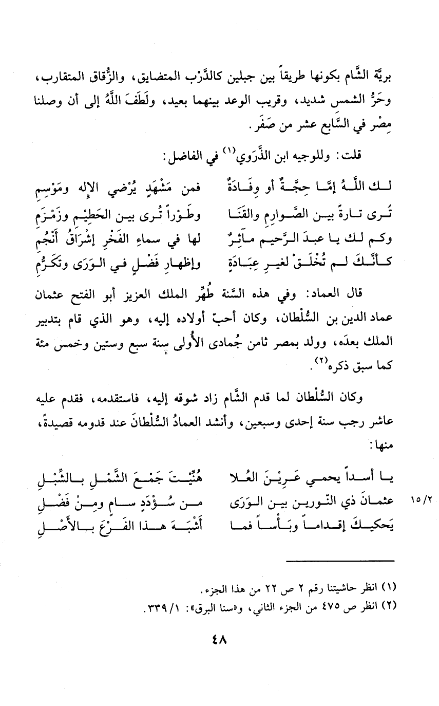 وَكَانَ السُّلْطَان لما قدم الشَّام زَاد شوقه إِلَيْهِ فاستقدمه فَقدم عَلَيْهِ عَاشر رَجَب سنة إِحْدَى وَسبعين وَأنْشد الْعِمَاد السُّلْطَان عِنْد قدومه قصيدة مِنْهَا