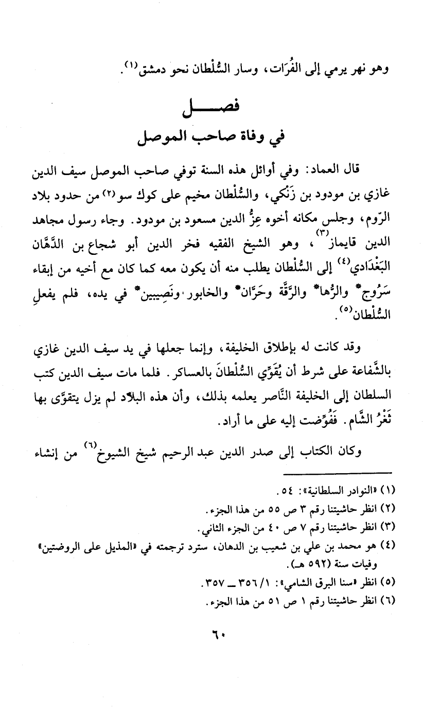 قَالَ الْعِمَاد وَفِي أَوَائِل هَذِه السّنة توفّي صَاحب الْموصل سيف الدّين غَازِي بن مودود بن زنكي وَالسُّلْطَان مخيم على كوك سو من حُدُود بِلَاد الرّوم وَجلسَ مَكَانَهُ أَخُوهُ عز الدّين مَسْعُود بن مودود