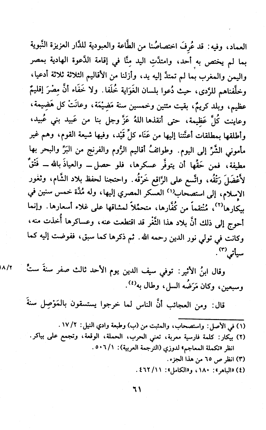 وَإِنَّمَا أحْوج إِلَى ذَلِك أَن بِلَاد هَذَا الثغر قد اقتطعت عَنهُ وعساكرها أخذت مِنْهُ وَكَانَت فِي تولي نور الدّين رَحمَه الله