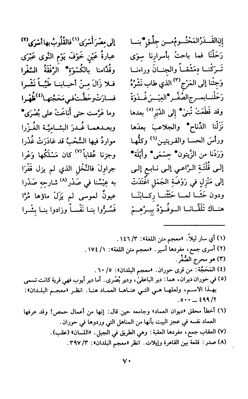 (إِن الْقدر المحتوم من جلق بِنَا ... إِلَى مصر أسرى فالقلوب بهَا أسرى)