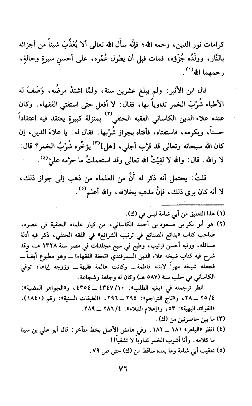 فَقَالَ لَهُ يَا عَلَاء الدّين إِن كَانَ الله سُبْحَانَهُ وَتَعَالَى قد قرب أَجلي هَل يُؤَخِّرهُ شرب الْخمر قَالَ لَا وَالله