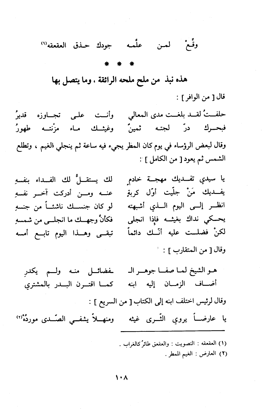 (وَقع لمن علمه ... جودك حذق العقعقه) // مجزوء الرجز //