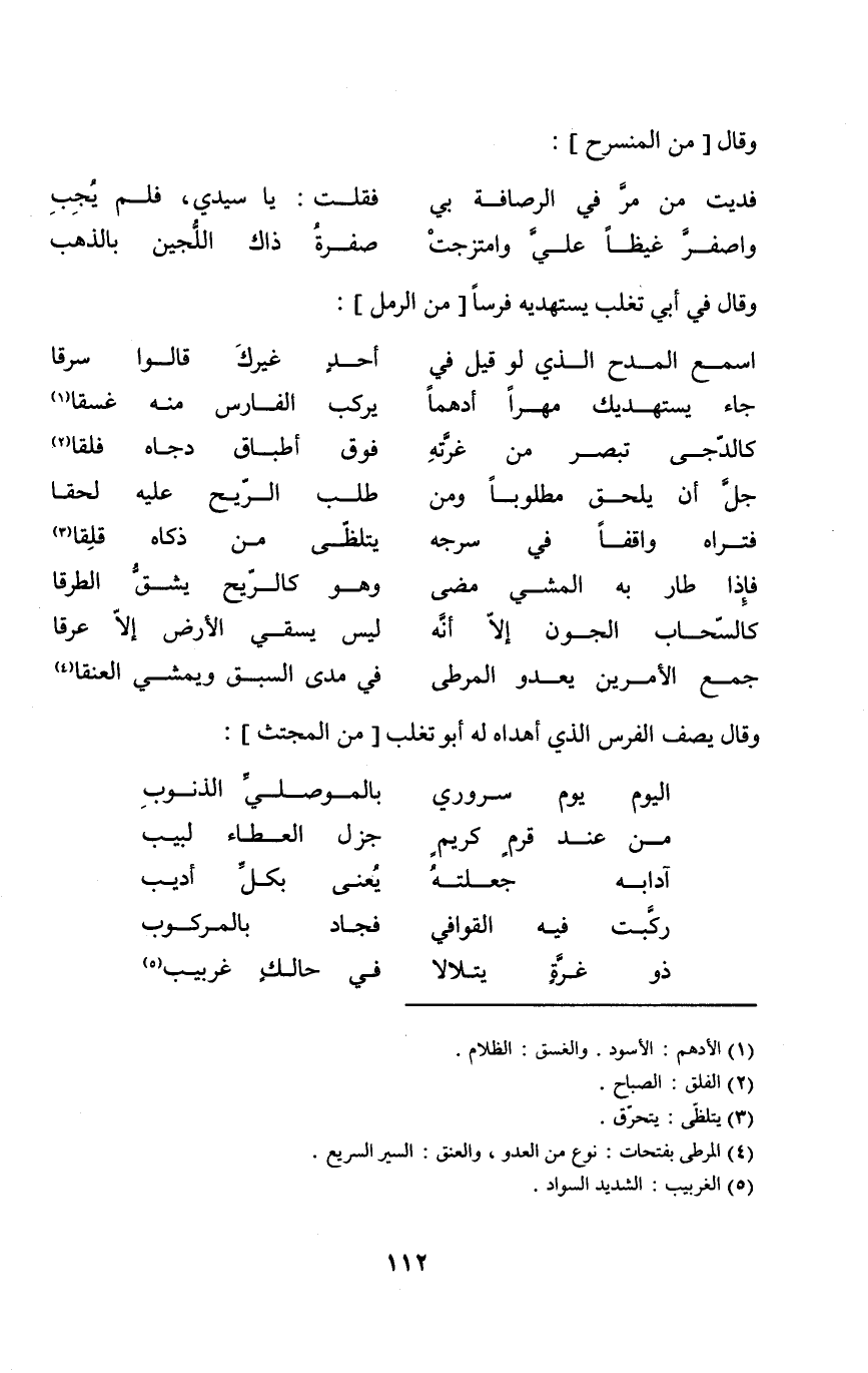 وَقَالَ يصف الْفرس الَّذِي أهداه لَهُ أَبُو تغلب