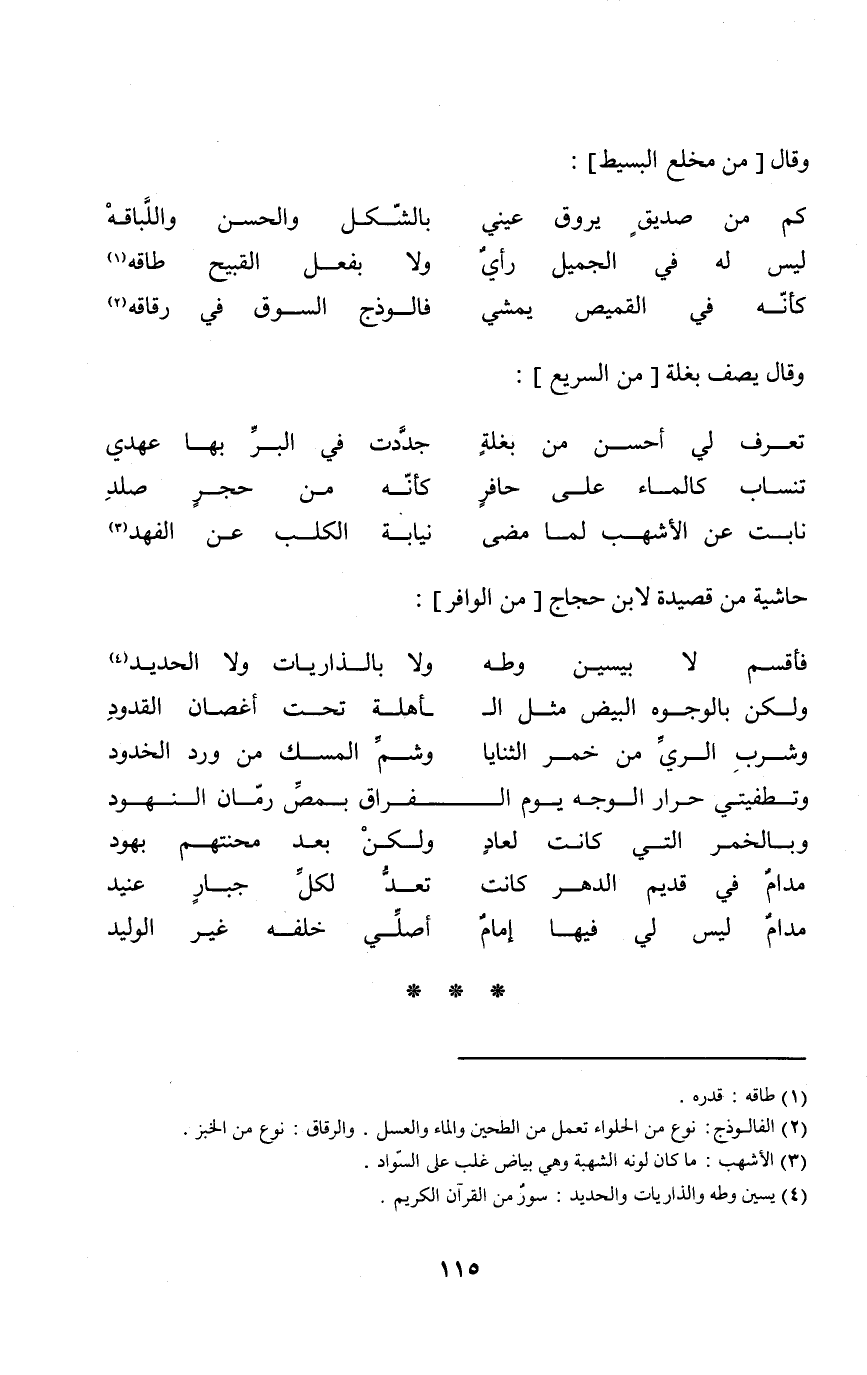 (كَأَنَّهُ فِي الْقَمِيص يمشي ... فالوذج السُّوق فِي رقاقه) // مخلع الْبَسِيط //