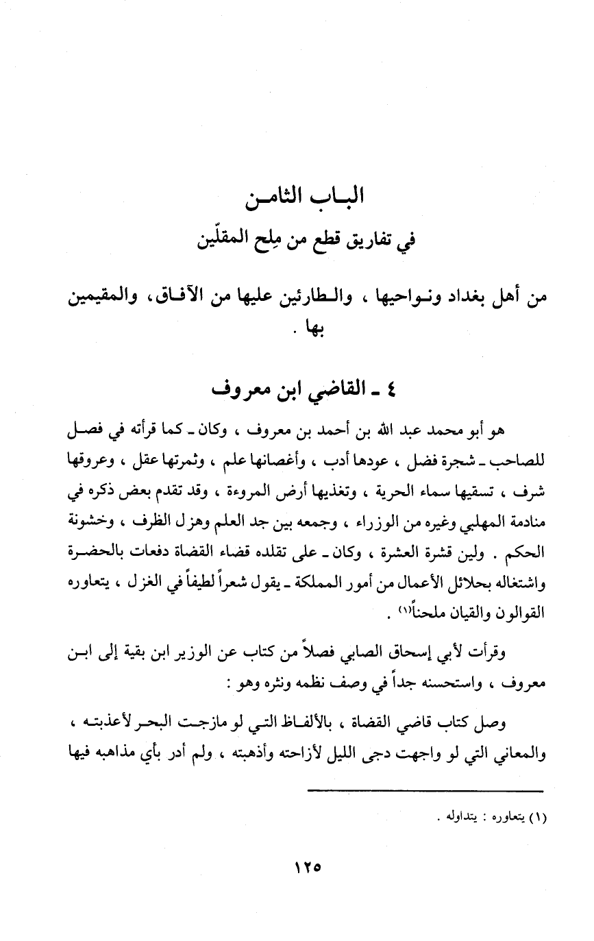الْبَاب الثَّامِن فِي تفاريق قطع من ملح المقلين من أهل بَغْدَاد ونواحيها والطارئين عَلَيْهَا من الْآفَاق والمقيمين بهَا
