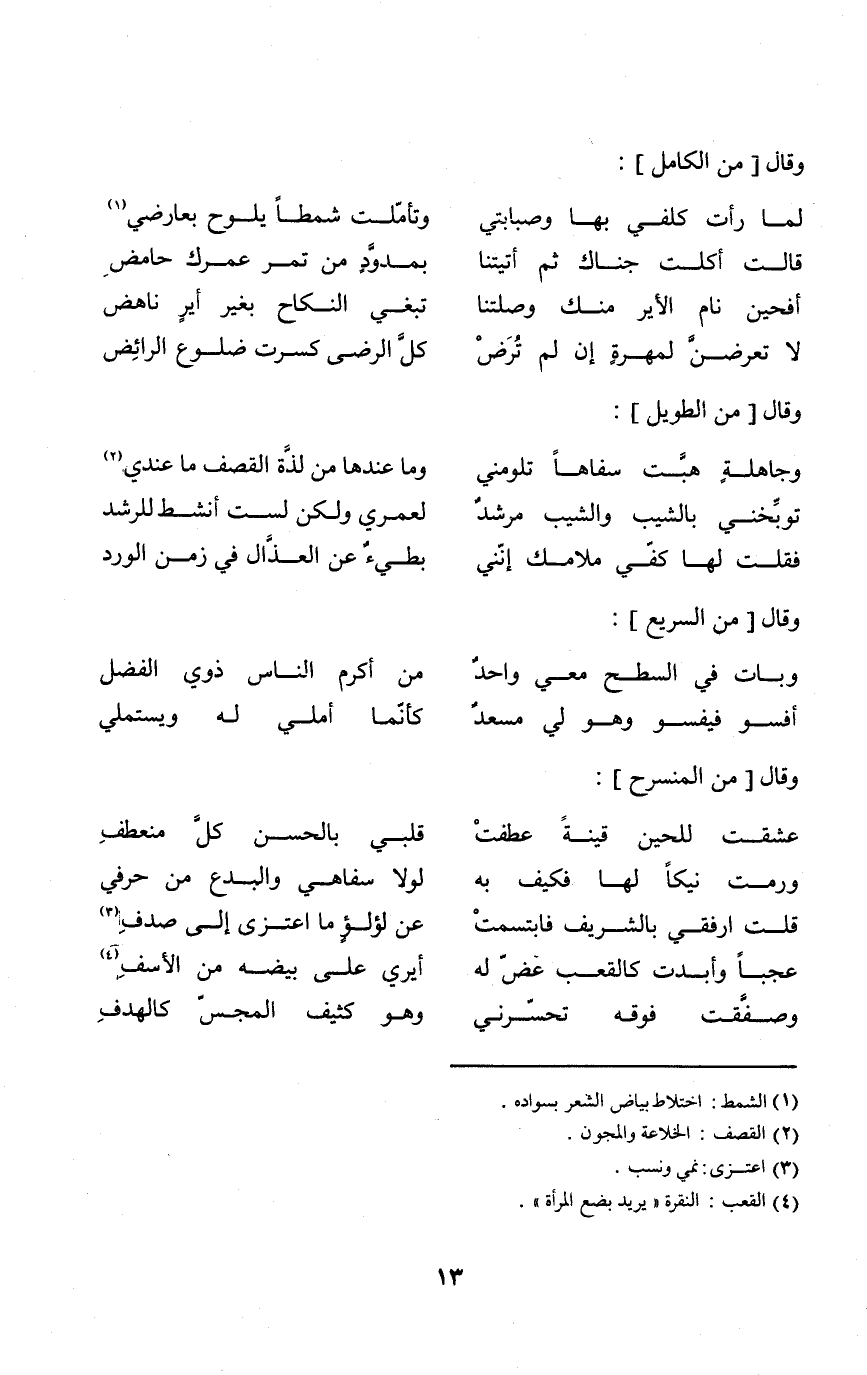 (عشقت للحين قينة عطفت ... قلبِي بالْحسنِ كل منعطف)