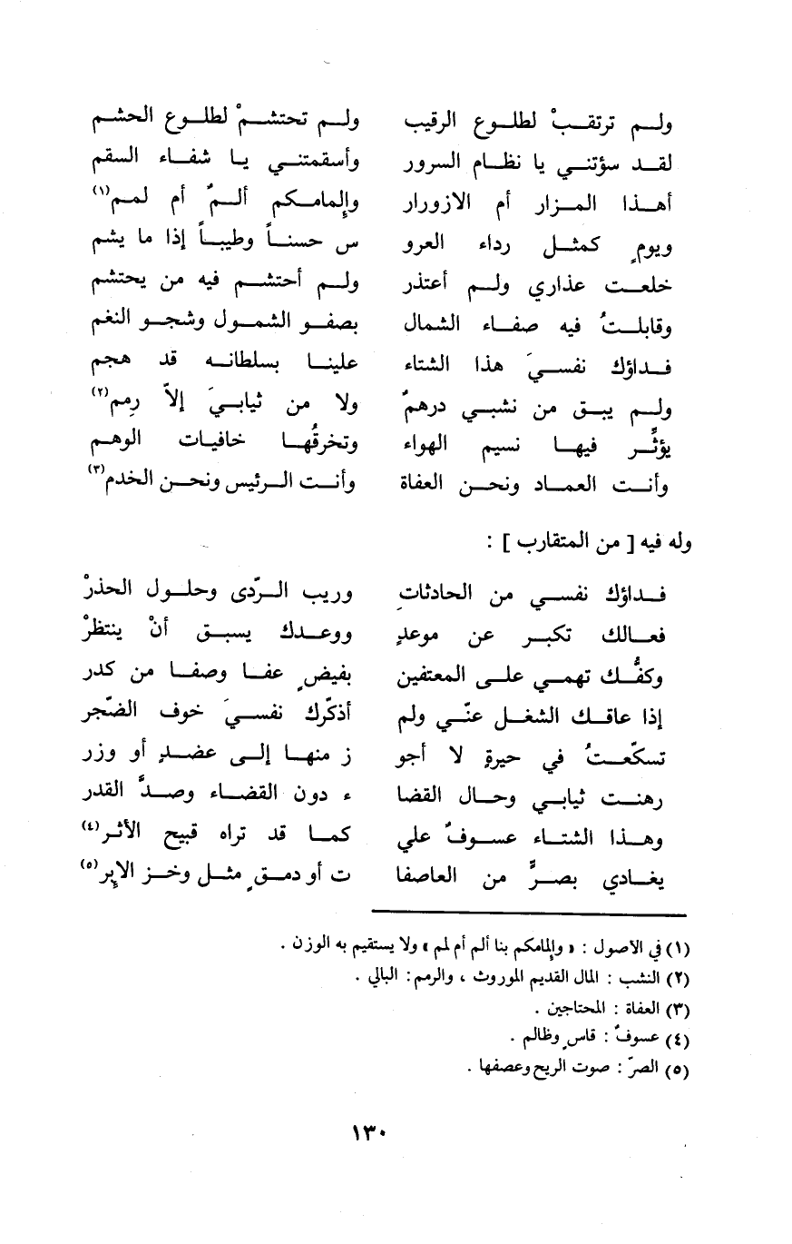 (فداؤك نَفسِي هَذَا الشتَاء ... علينا بسلطانه قد هجم)