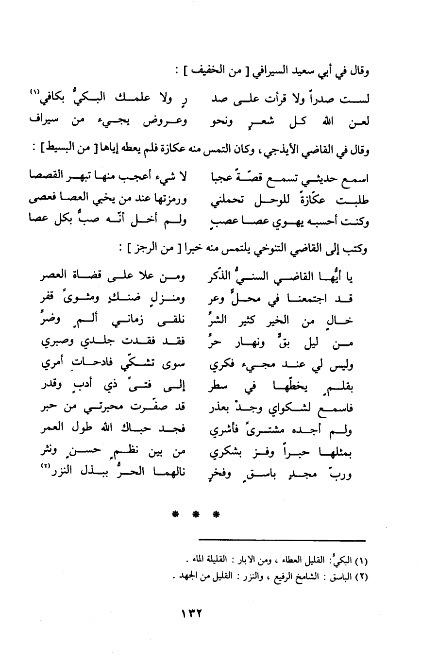 (لعن الله كل شعر وَنَحْو ... وعروض يَجِيء من سيراف) // الْخَفِيف //