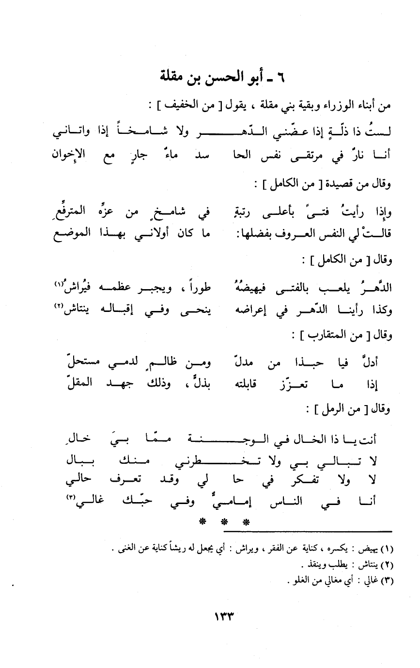 من أَبنَاء الوزراء وَبَقِيَّة بني مقلة يَقُول