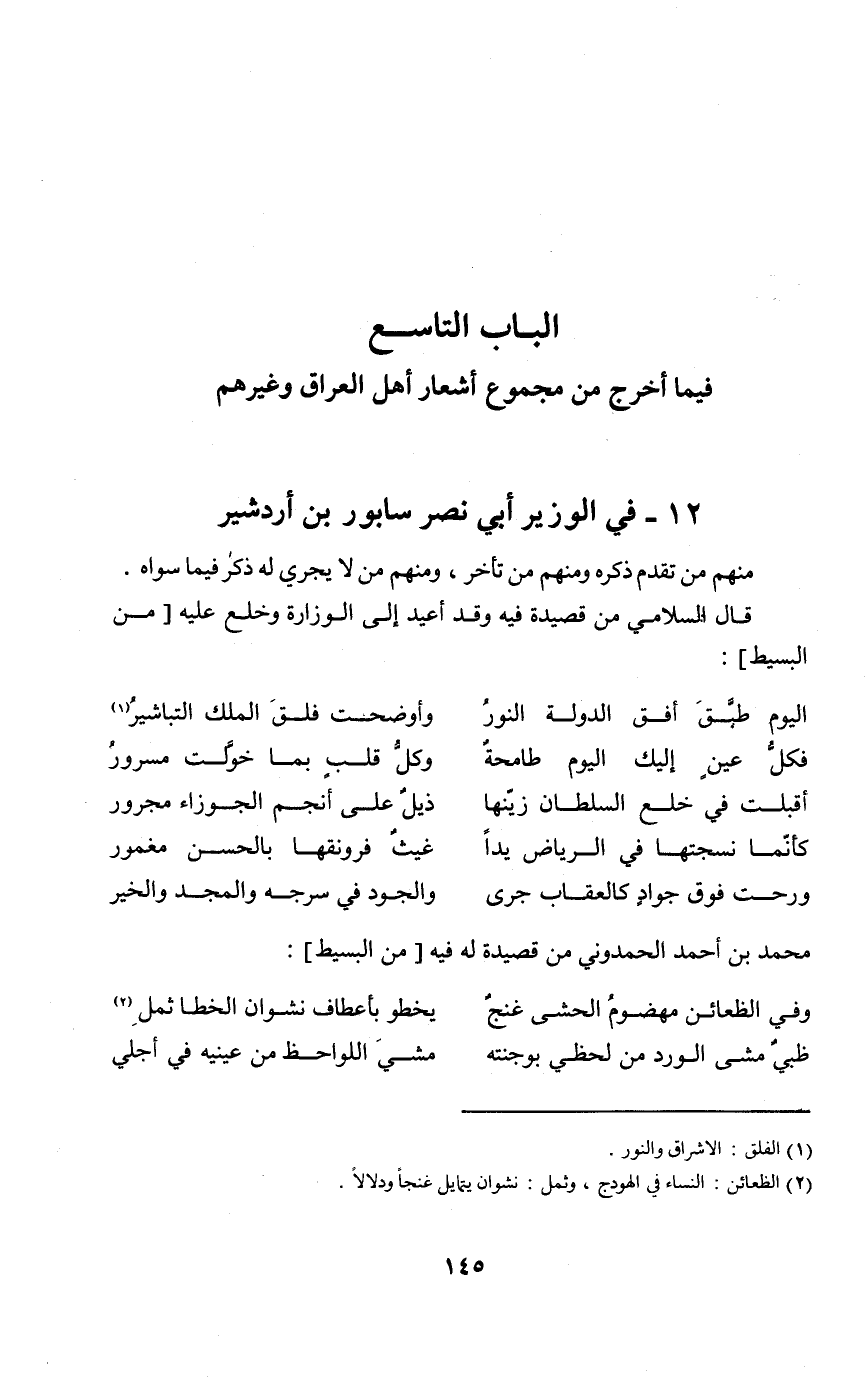 الْبَاب التَّاسِع فِيمَا أخرج من مَجْمُوع أشعار أهل الْعرَاق وَغَيرهم