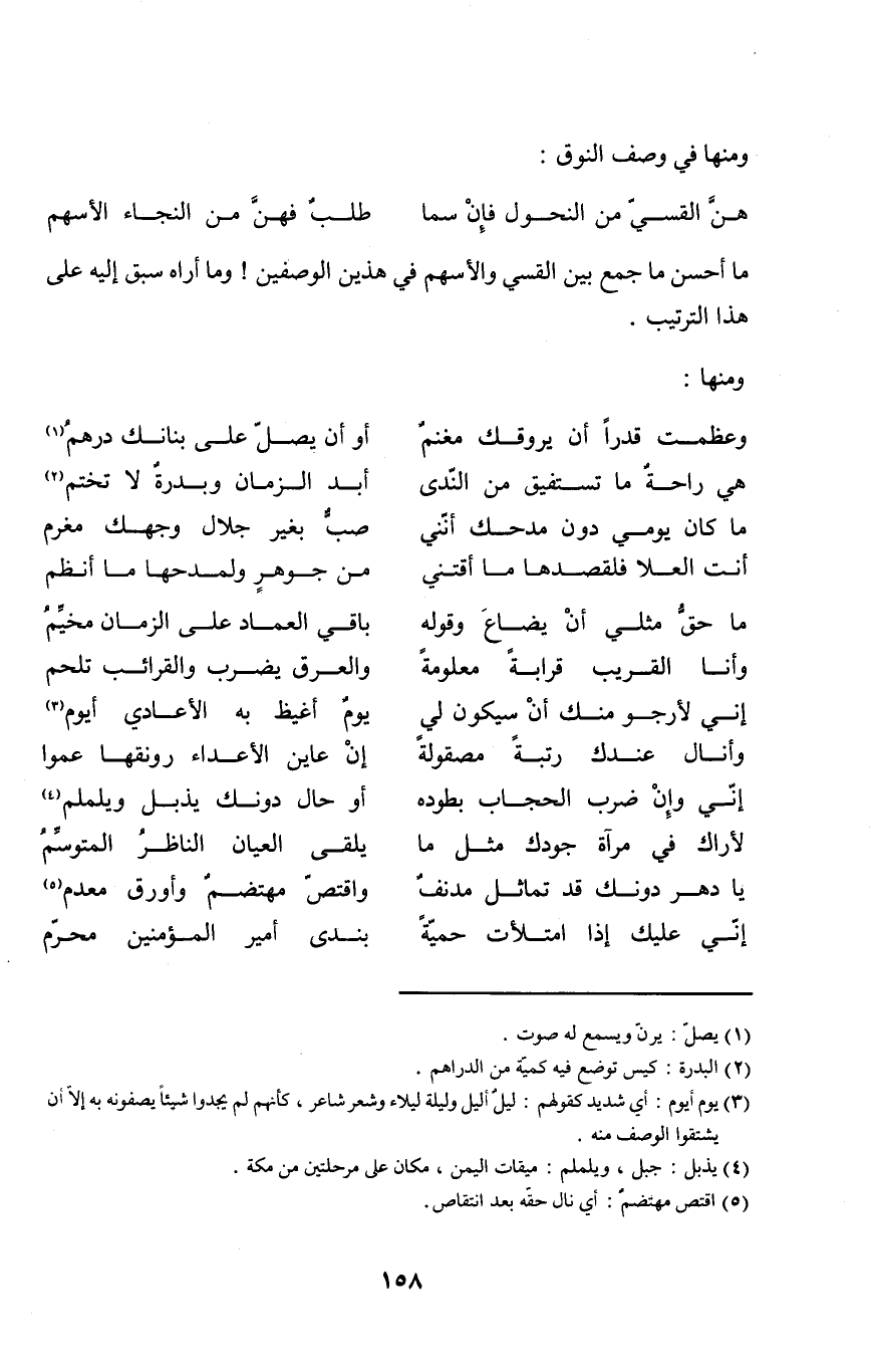 وَمَا أحسن مَا جمع بَين القسي والأسهم فِي هذَيْن الوصفين وَمَا أرَاهُ سبق إِلَيْهِ على هَذَا التَّرْتِيب