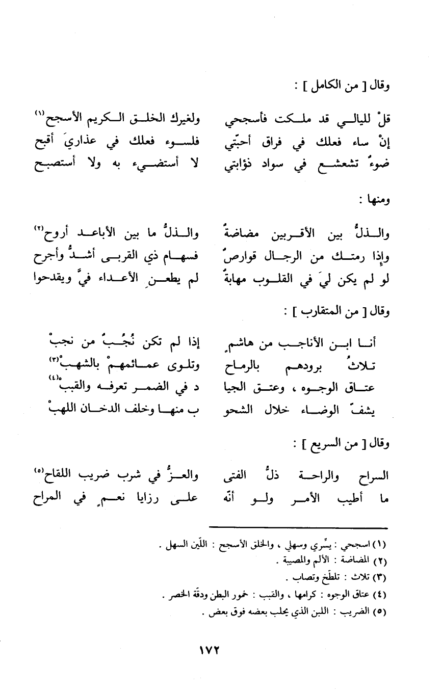 (قل لليالي قد ملكت فأسجحي ... ولغيرك الْخلق الْكَرِيم الأسجح)