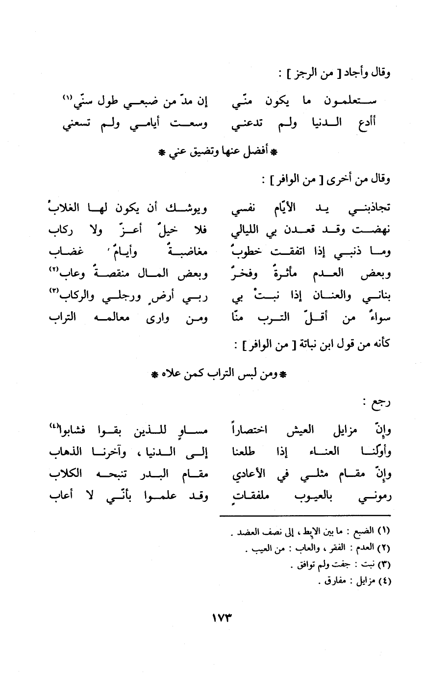 (تجاذبني يَد الْأَيَّام نَفسِي ... ويوشك أَن يكون لَهَا الغلاب)