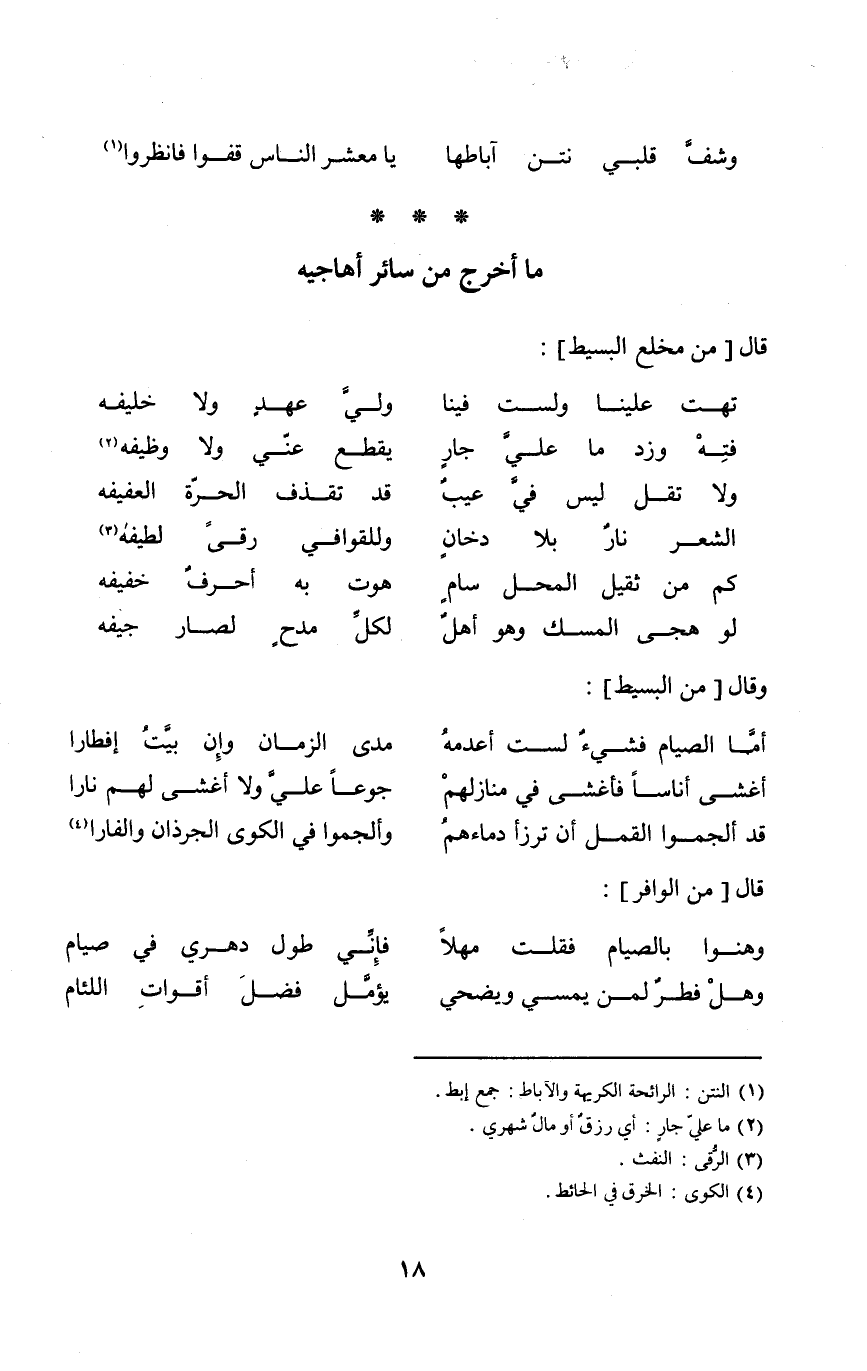 (وشف قلبِي نَتن آباطها ... يَا معشر النَّاس قفوا فانظروا) // السَّرِيع //
