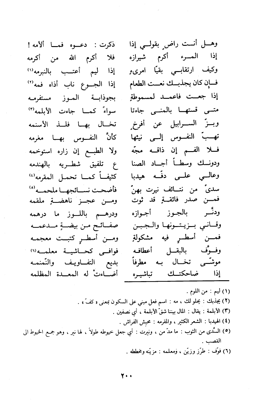 (فَإِن كَانَ يجذبك نعت الطَّعَام ... إِذا الْجُوع نَاب أَذَاهُ فَمه)