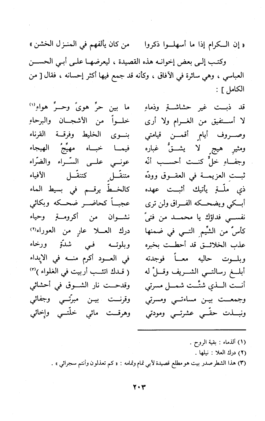 وَكتب إِلَى بعض إخوانه هَذِه القصيدة ليعرضها على أبي الْحسن العباسي وَهِي سائرة فِي الْآفَاق وَكَأَنَّهُ قد جمع فِيهَا أَكثر إحسانه فَقَالَ