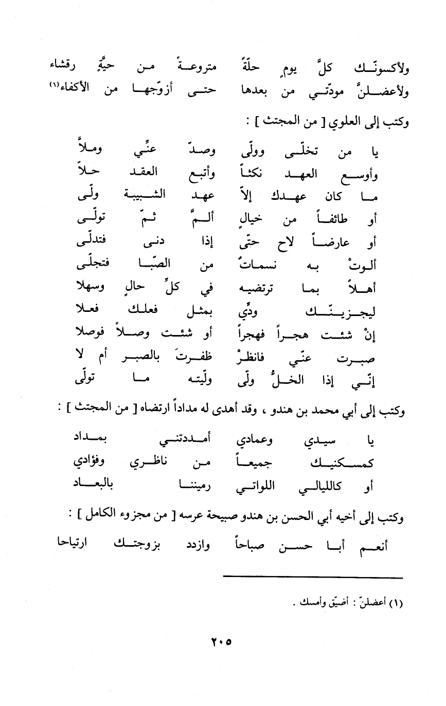 وَكتب إِلَى أَخِيه أبي الْحسن بن هندو صَبِيحَة عرسه