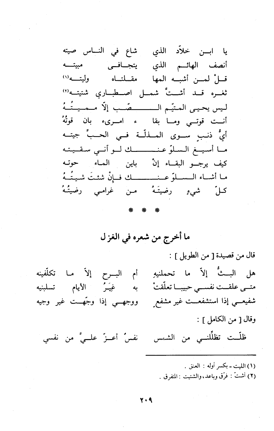 (مَتى علقت نَفسِي حبيبا تعلّقت ... بِهِ غير الْأَيَّام تسلبنيه)