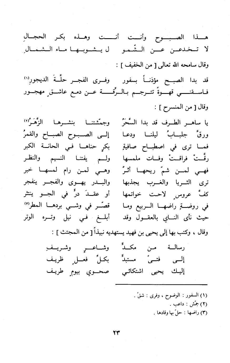 (قد بدا الصُّبْح مُؤذنًا بسفور ... وفرى الْفجْر حلَّة الديجور)