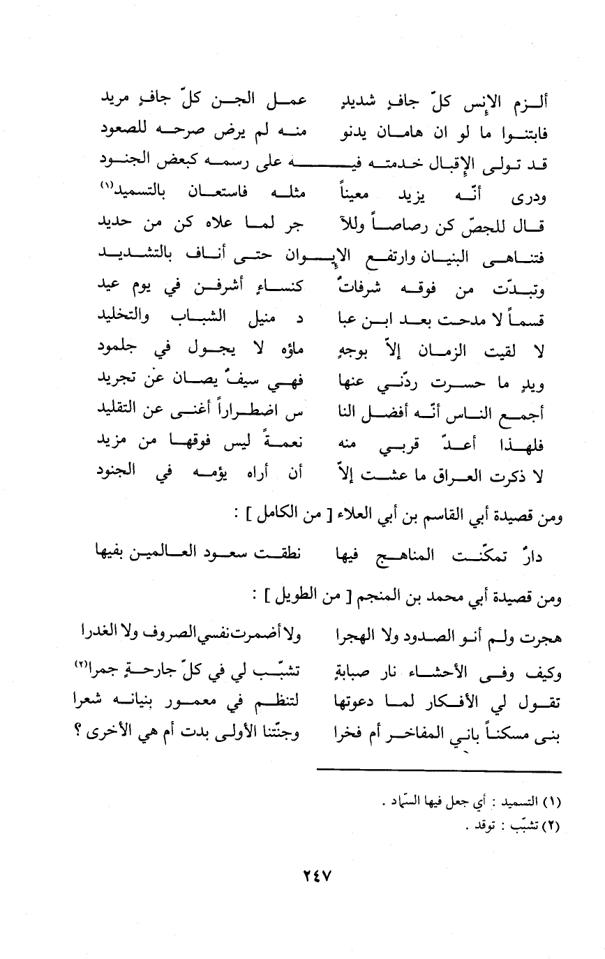(ألزم الْإِنْس كل جَاف شَدِيد ... عمل الْجِنّ كل جَاف مُرِيد)