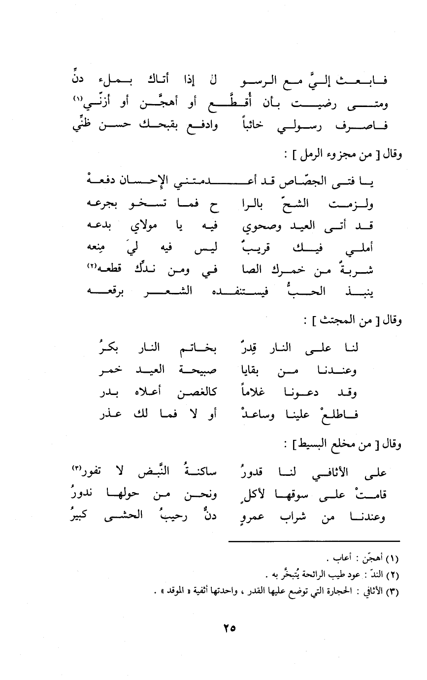 (على الأثافي لنا قدرو ... سَاكِنة النبض لَا تَفُور)