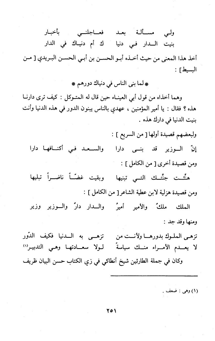 (بنيت الدَّار فِي دنياك ... أم دنياك فِي الدَّار) // الهزج //