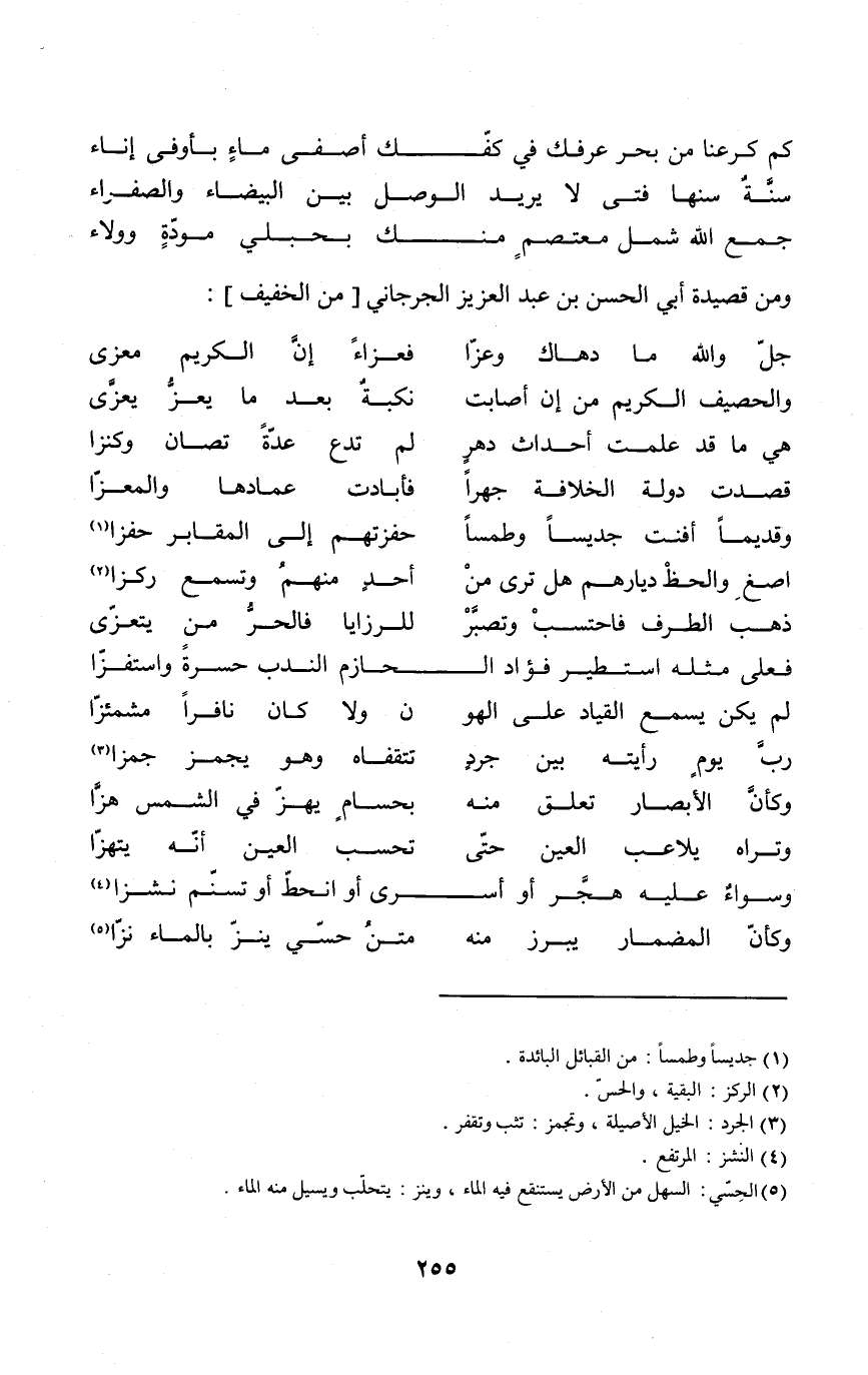 وَمن قصيدة أبي الْحسن بن عبد الْعَزِيز الْجِرْجَانِيّ