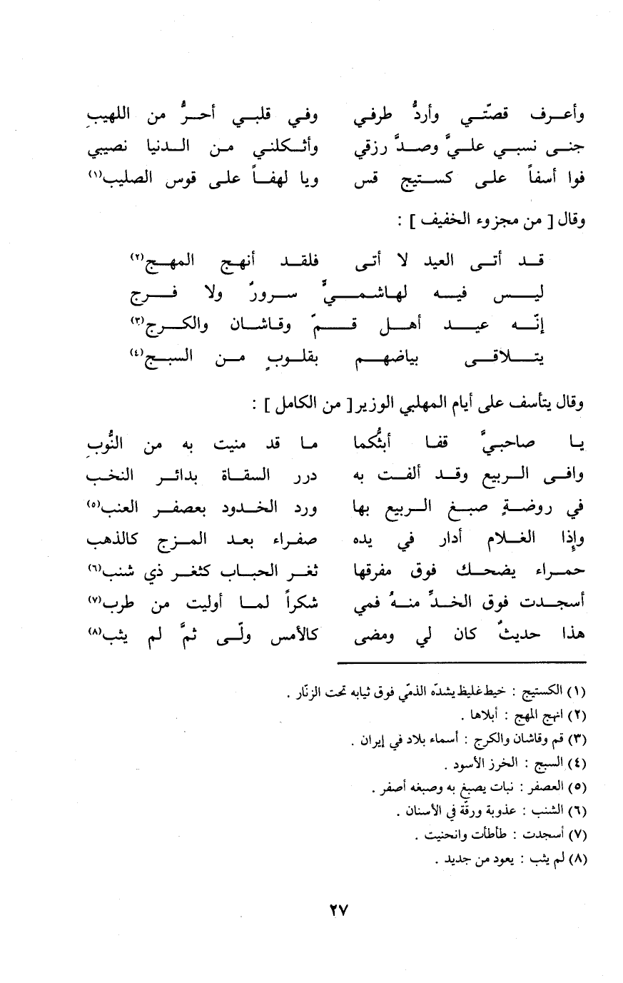 (فوا أسفا على كستيج قس ... وَيَا لهفا على قَوس الصَّلِيب) // الوافر //