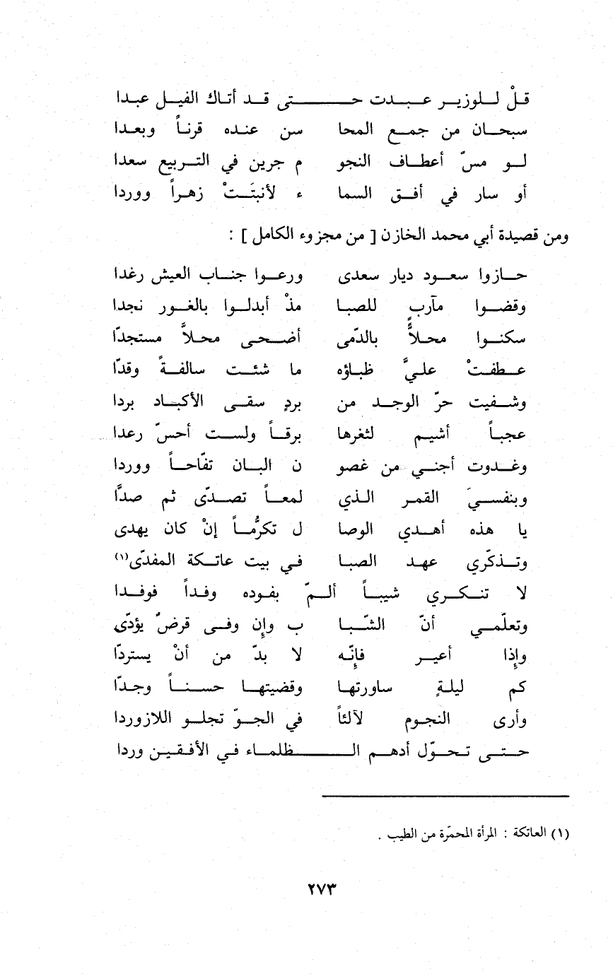 (وتذكري عهد الصِّبَا ... فِي بَيت عَاتِكَة المفدى)