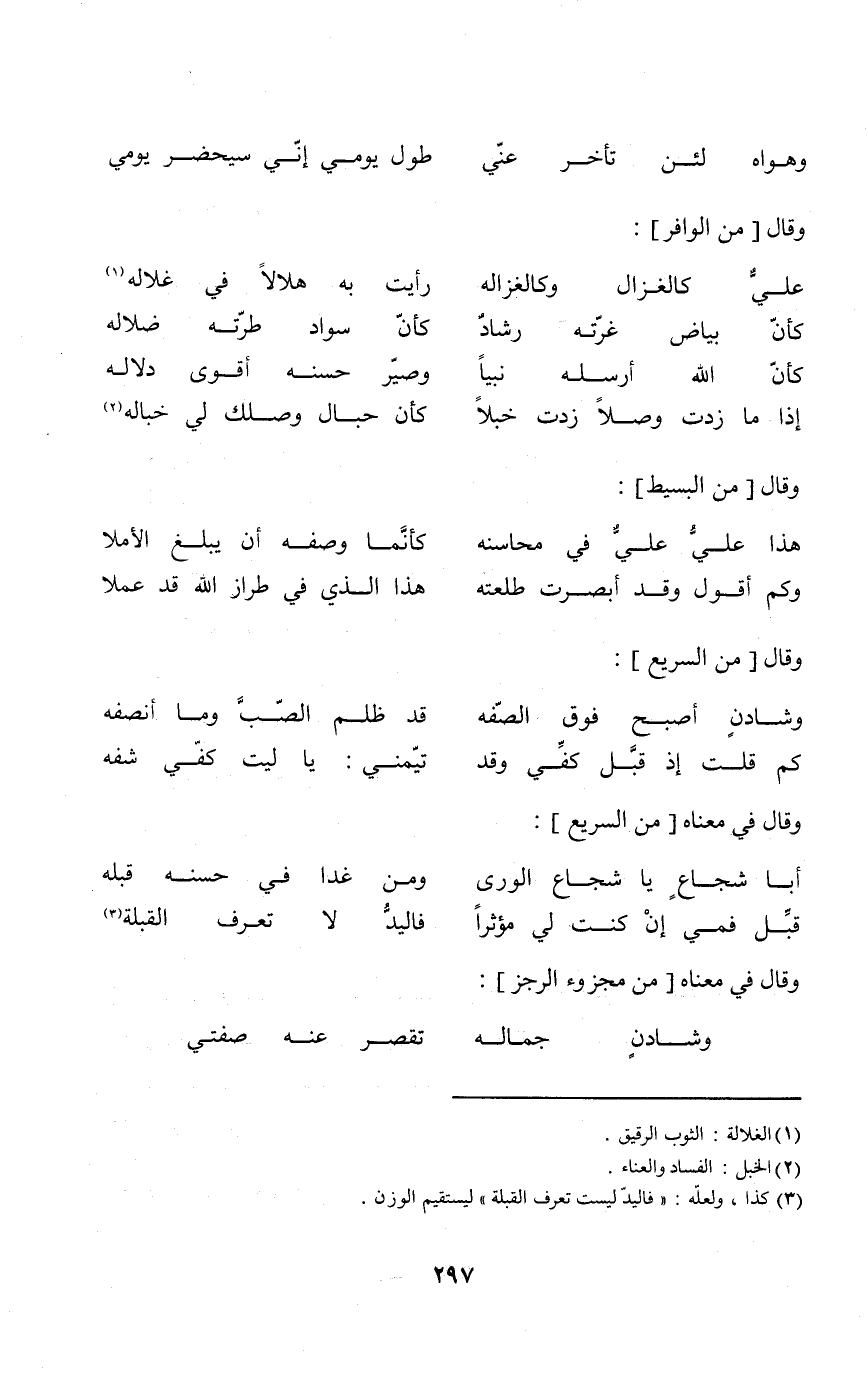 (وهواه لَئِن تَأَخّر عني ... طول يومي إِنِّي سيحضر يومي) // الْخَفِيف //