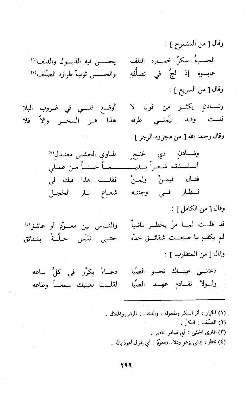 (الْحبّ سكر خماره التّلف ... يحسن فِيهِ الذبول والدنف)