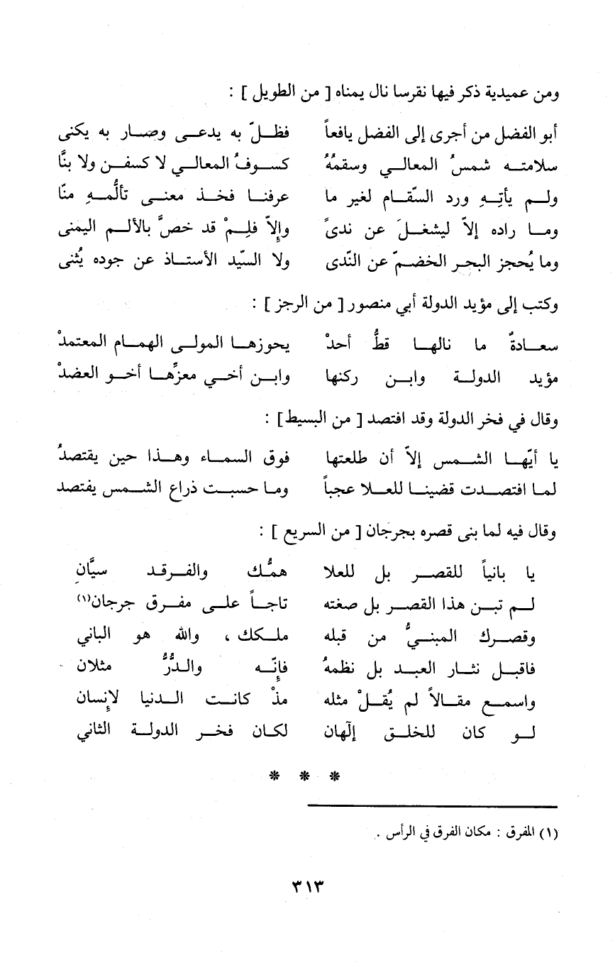 (لم تبن هَذَا الْقصير بل صغته ... تاجا مفرق على مفرق جرجان)
