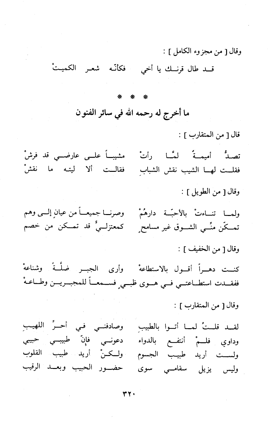 (لقد قلت لما أَتَوا بالطبيب ... وصادفني فِي أحر اللهيب)