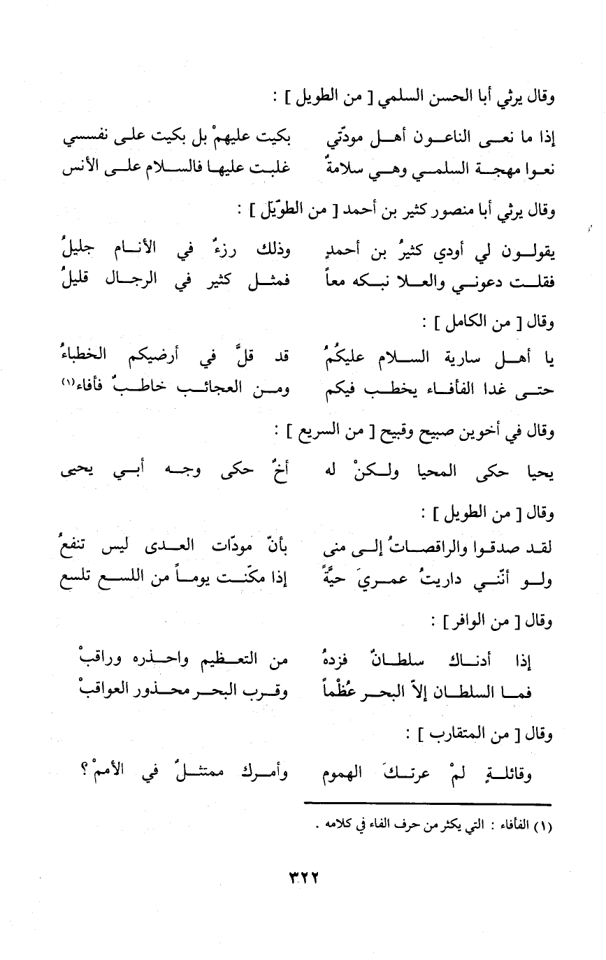 (فَقلت دَعونِي والعلا نبكه مَعًا ... فَمثل كثير فِي الرِّجَال قَلِيل) // الطَّوِيل //
