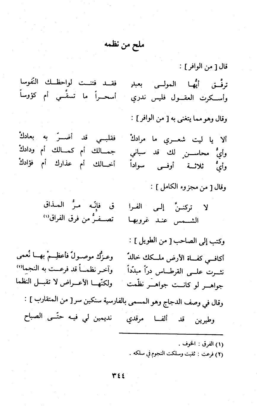 (نثرت على القرطاس درا مبددا ... وَآخر نظما قد فرعت بِهِ النجما)