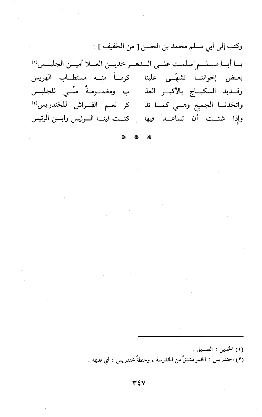 (يَا أَبَا مُسلم سلمت على الدَّهْر خدين الْعلَا أَمِين الجليس ... )
