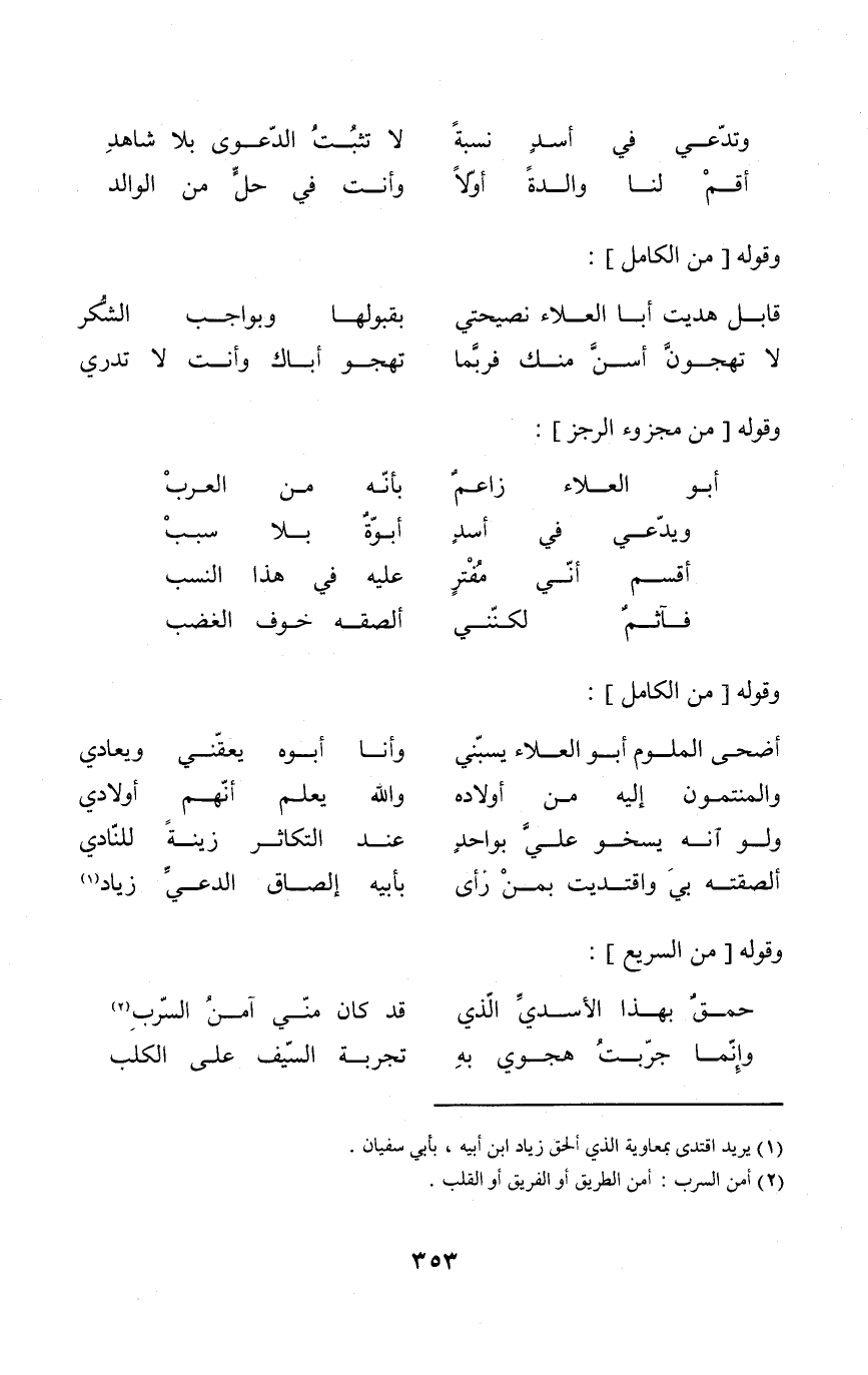 (وتدعي فِي أَسد نِسْبَة ... وَلَا تثبت الدَّعْوَى بِلَا شَاهد)