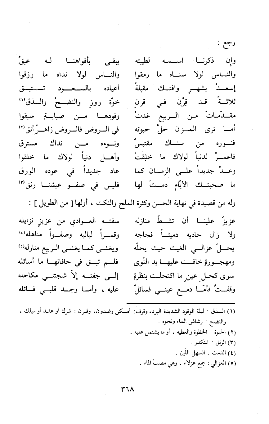 (وَالنَّاس لَوْلَا سناه مَا رمقوا ... وَالنَّاس لَوْلَا نداه مَا رزقوا)