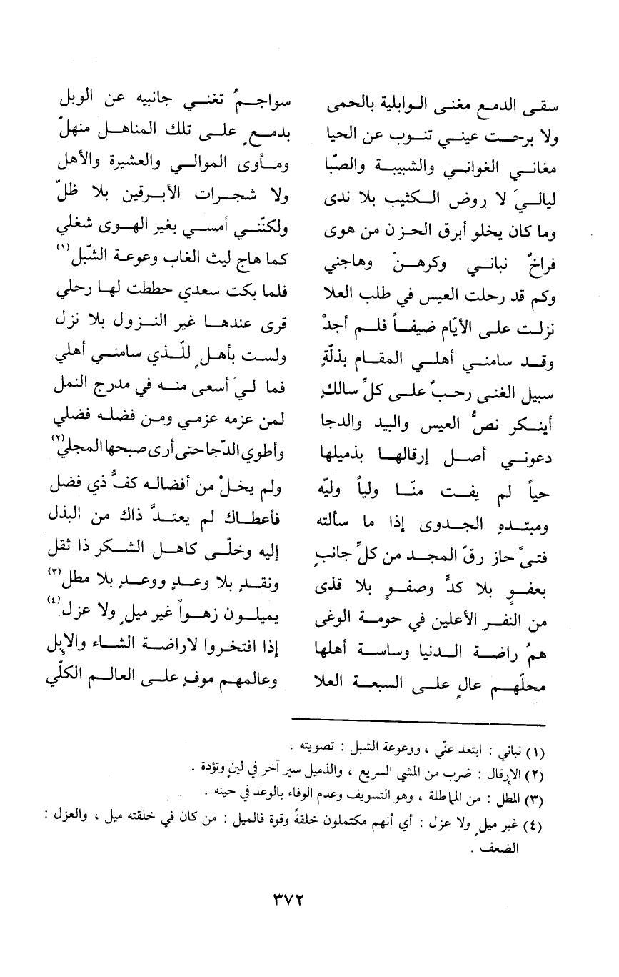 (مغاني الغواني والشبيبة وَالصبَا ... ومأوى الموَالِي وَالْعشيرَة والأهل)