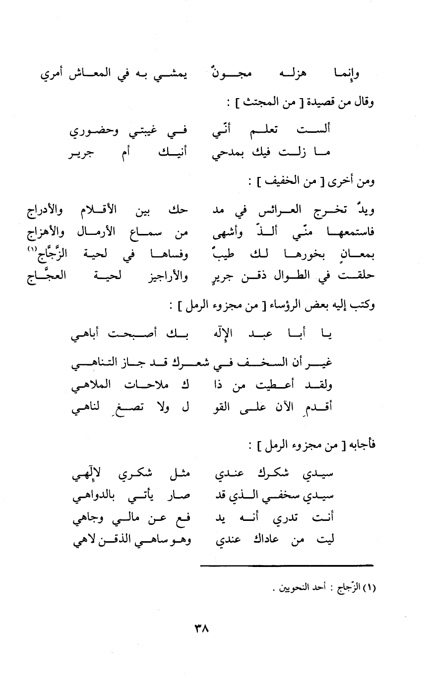 (حلقت فِي الطوَال ذقن جرير ... والأراجيز لحية العجاج) // الْخَفِيف //