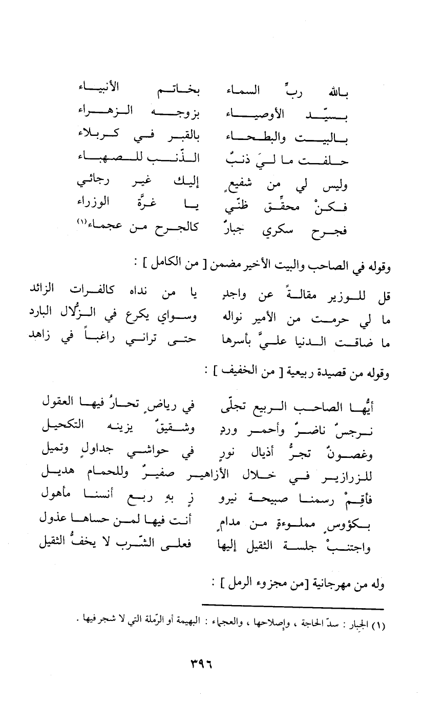 (أَيهَا الصاحب الرّبيع تجلى ... فِي رياض تحار فِيهَا الْعُقُول)