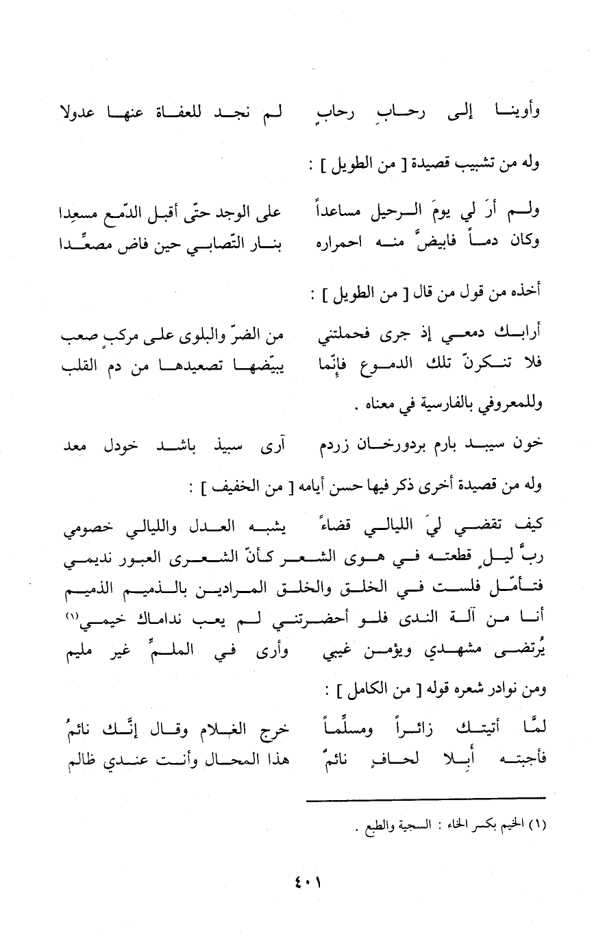 (فَلَا تنكرن تِلْكَ الدُّمُوع فَإِنَّمَا ... يبيضها تصعيدها من دم الْقلب) // الطَّوِيل //